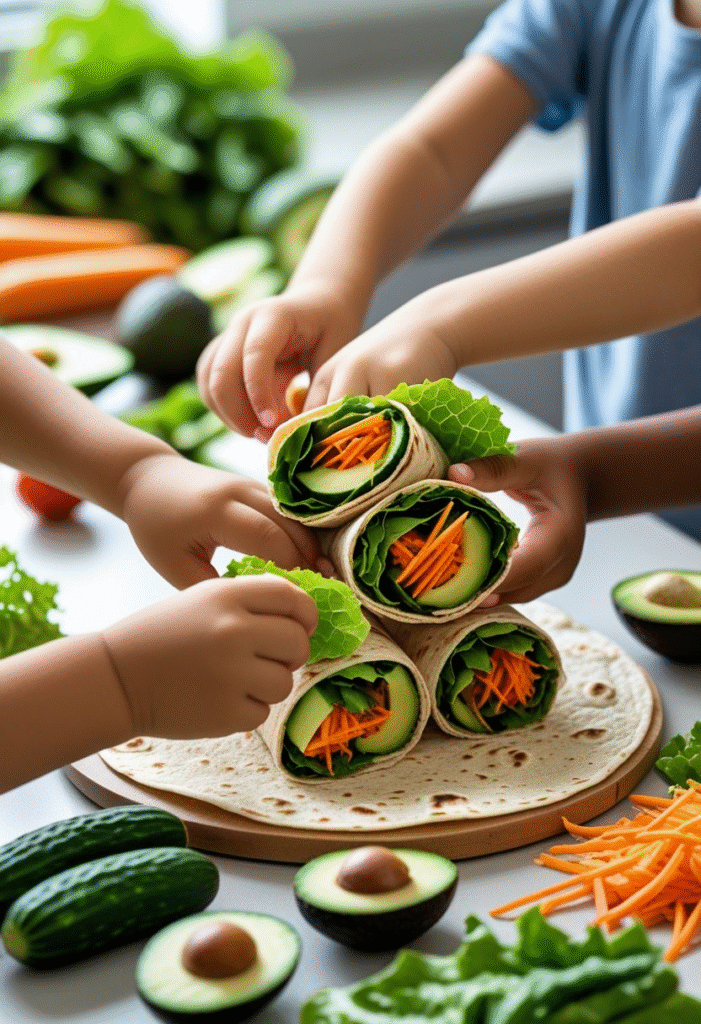 Veggie wraps are a great way to introduce kids to fresh vegetables. Have them choose their favorite veggies like cucumber, carrot, lettuce, and avocado, and wrap them in a whole wheat tortilla with hummus or cream cheese. This simple recipe is an excellent way to teach kids about healthy eating.