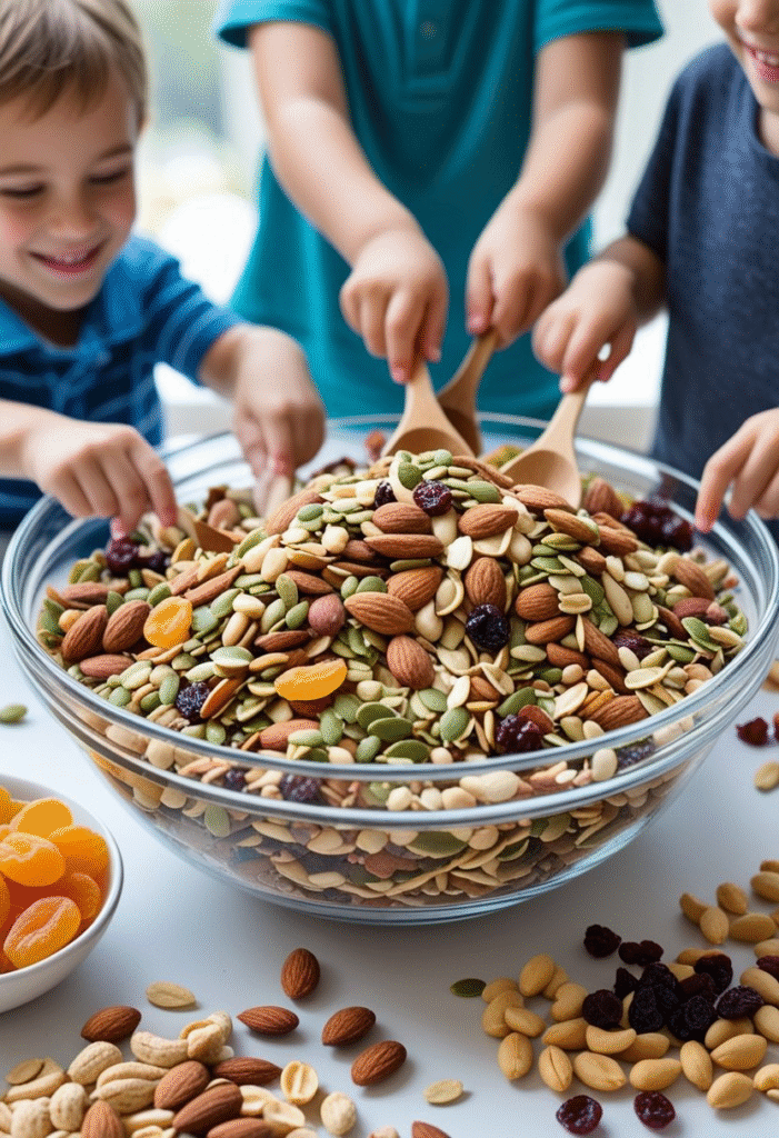 Tip: Include a variety of colorful ingredients to make the trail mix even more appealing to kids.