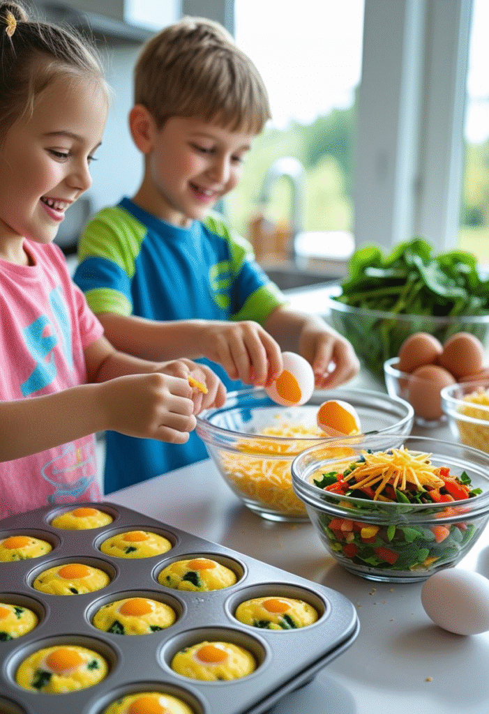 Egg muffins are a simple and healthy breakfast that kids can help prepare. Whisk eggs and pour them into a muffin tin, adding vegetables, cheese, or even cooked bacon. Bake them and enjoy! These can be made in advance for a grab-and-go breakfast.