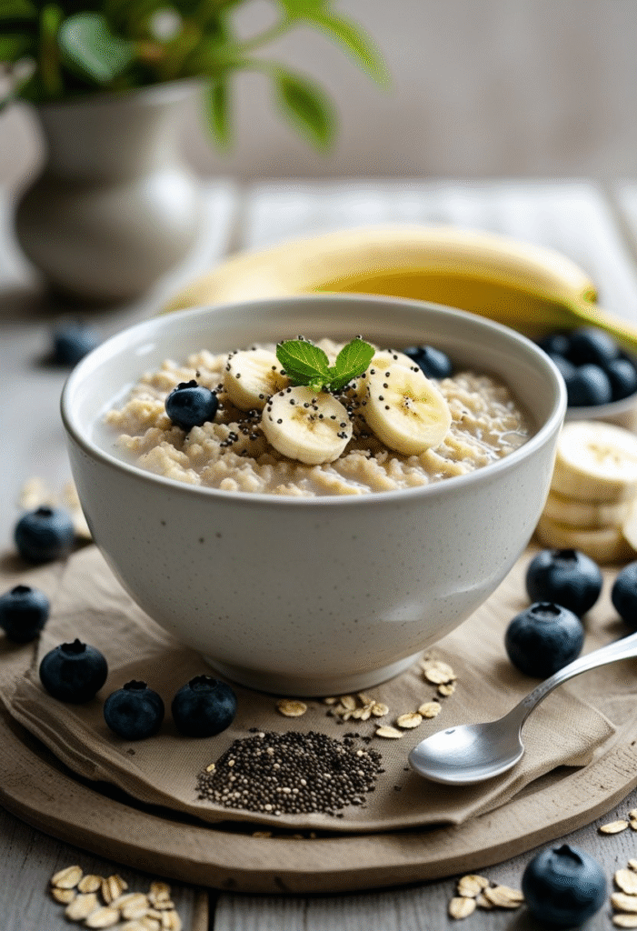 It’s best to keep your oatmeal simple, avoiding sugary toppings or heavy milk. Opt for a small bowl of plain oatmeal with a bit of honey or cinnamon for flavor.