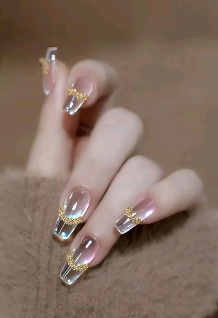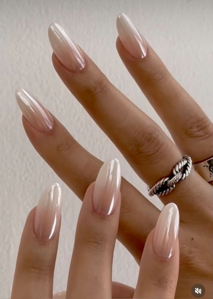 Inspired by the viral glazed look, this style uses pearly topcoats for a glossy, luminous finish.