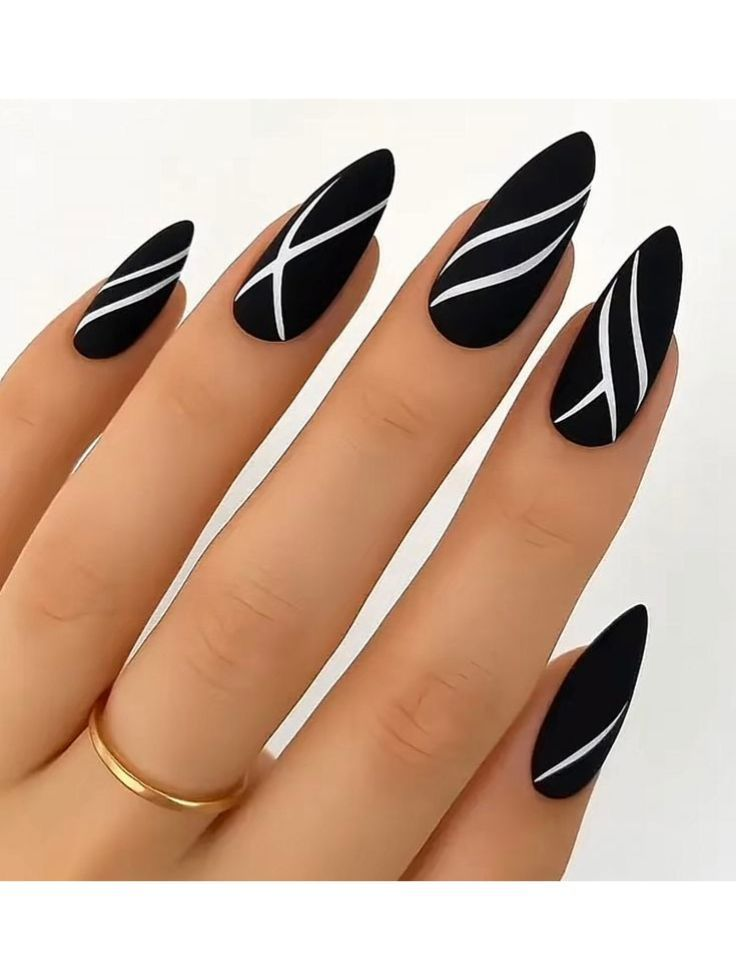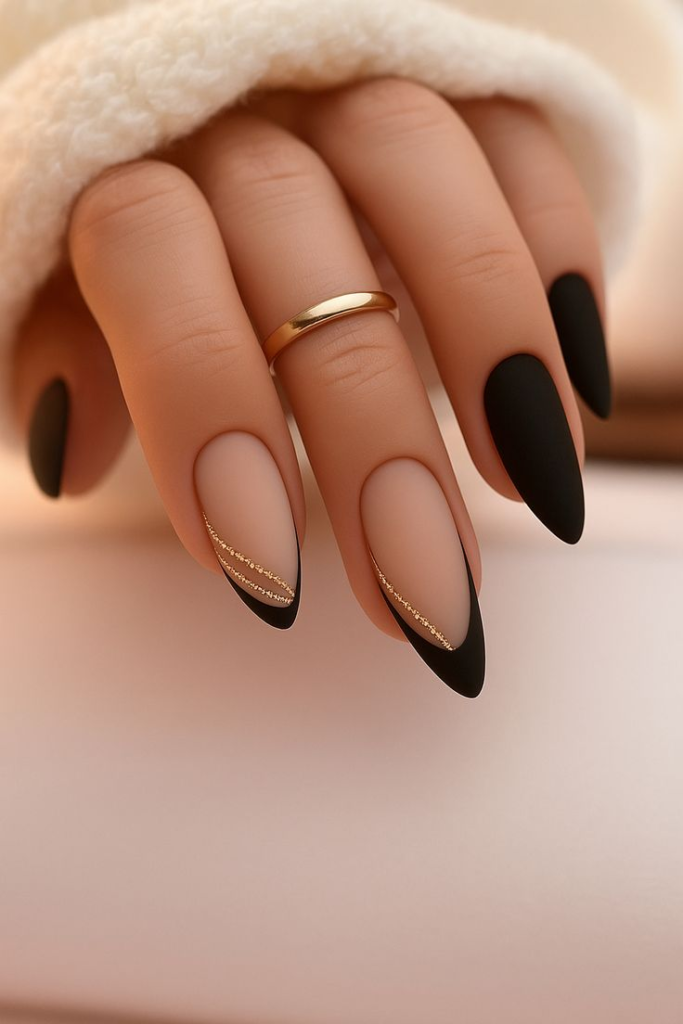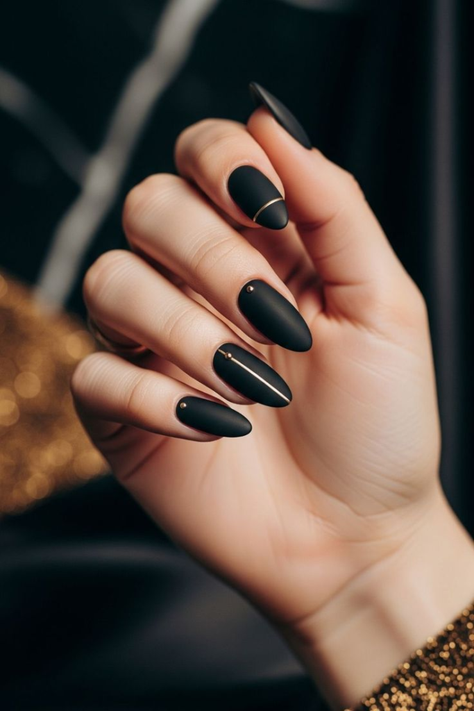 Sleek black almond nails make a strong statement and look amazing with glossy or matte finishes.
