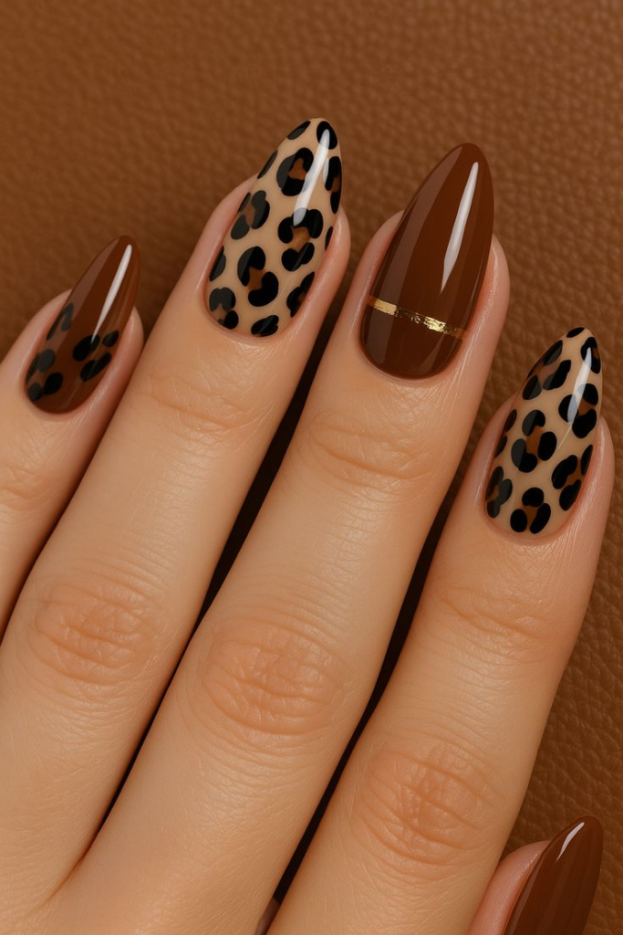 13. Animal Print Almond Nails