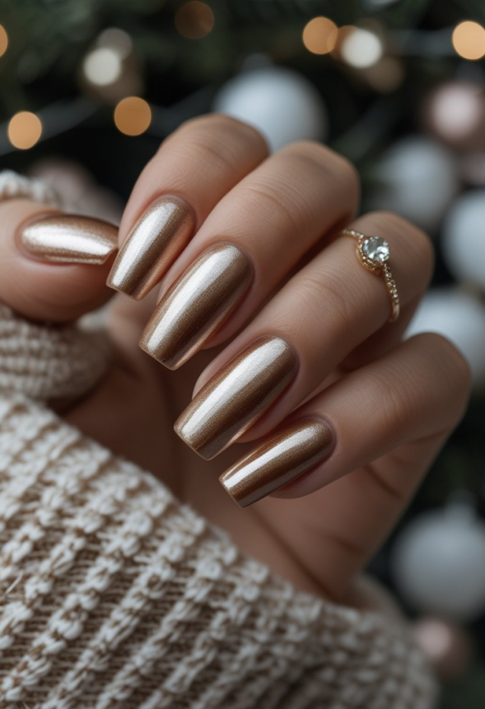 Gold, bronze, and copper tones are perfect for evenings and festive occasions.
