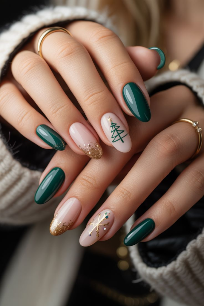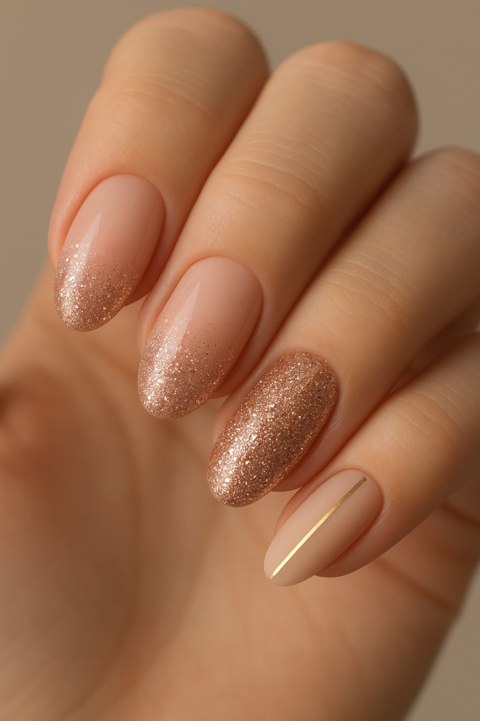 A touch of glitter on one or two nails adds sparkle without overwhelming the look.