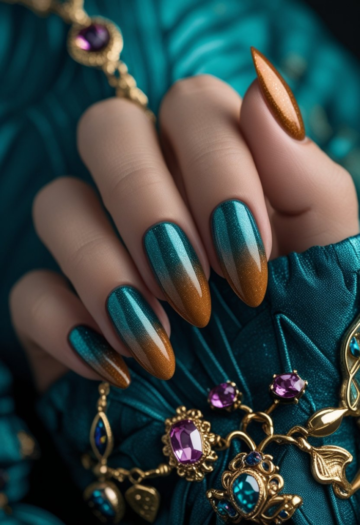 14. Jewel-Tone Almond Nails