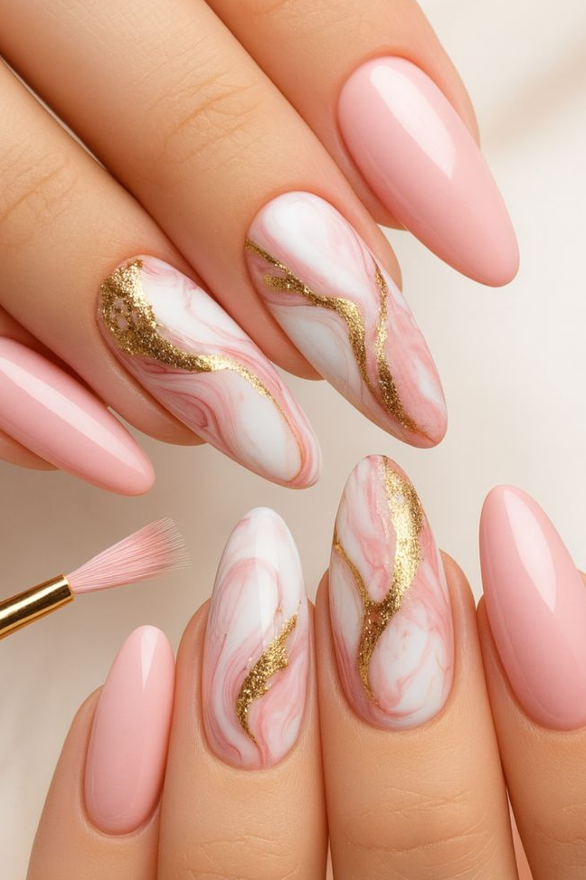 21. Marble Almond Nails