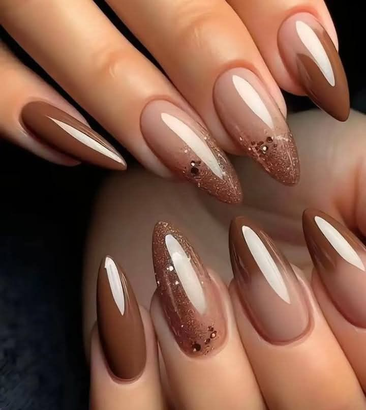 26. Neutral Brown Almond Nails