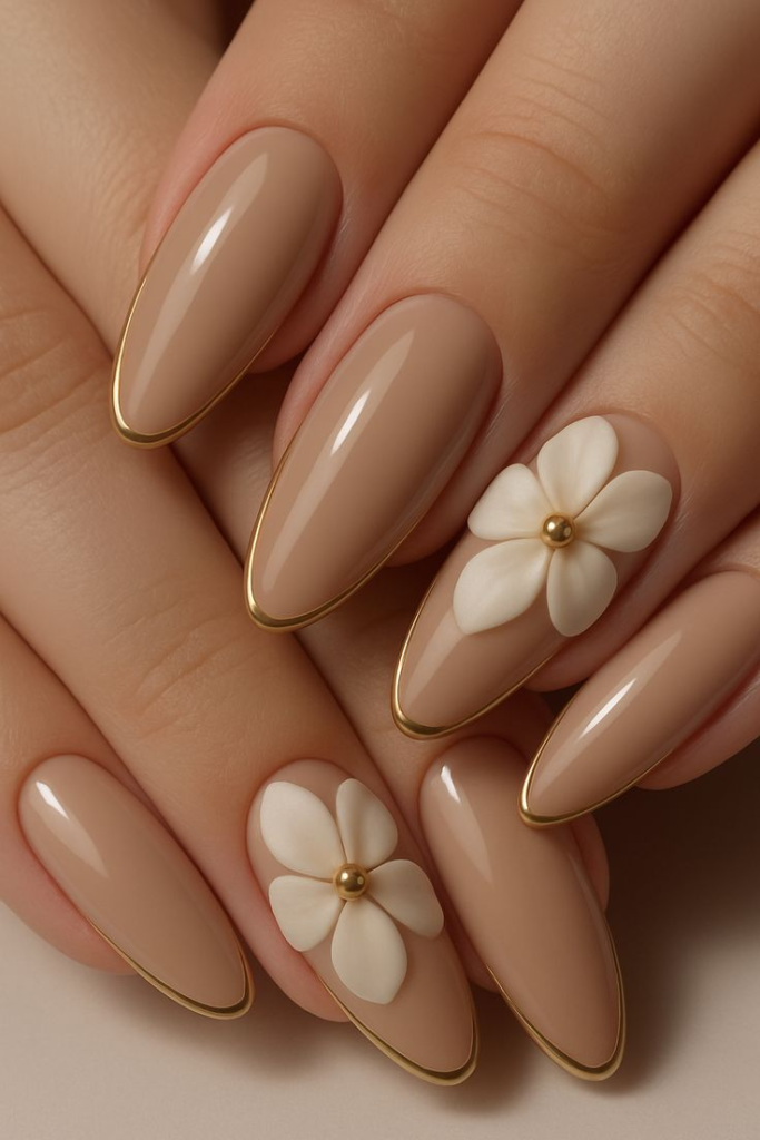 A nude almond manicure is effortlessly chic and suits every skin tone. Choose soft beige, blush, or caramel shades for a clean, polished look.