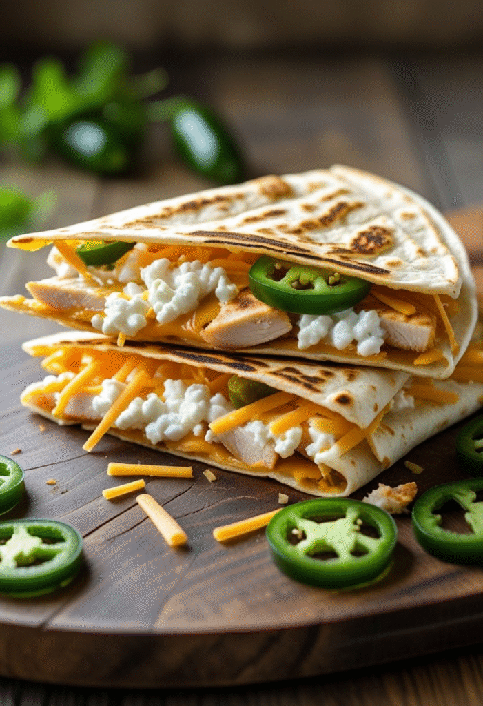 Spread cottage cheese inside a tortilla with shredded cheddar, jalapeños, and chicken. Grill until golden and crispy. This is a comfort food favorite that hits your macros.