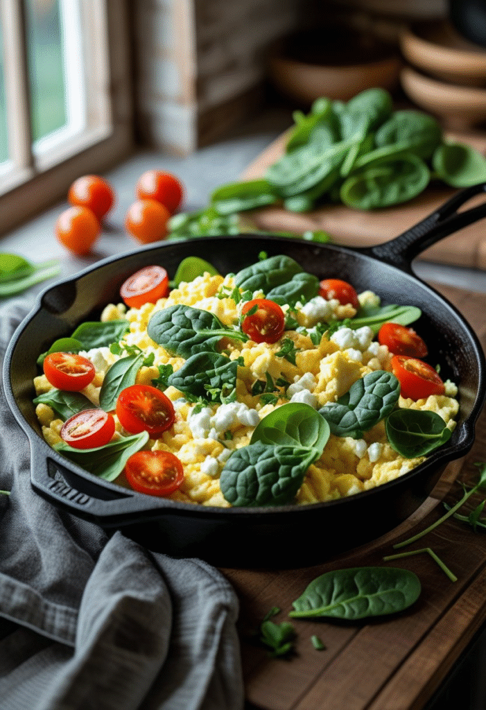 Add cottage cheese to your scrambled eggs for extra fluff and creaminess. Toss in spinach, tomatoes, and mushrooms to elevate the nutrients. This quick breakfast keeps you fueled for hours.