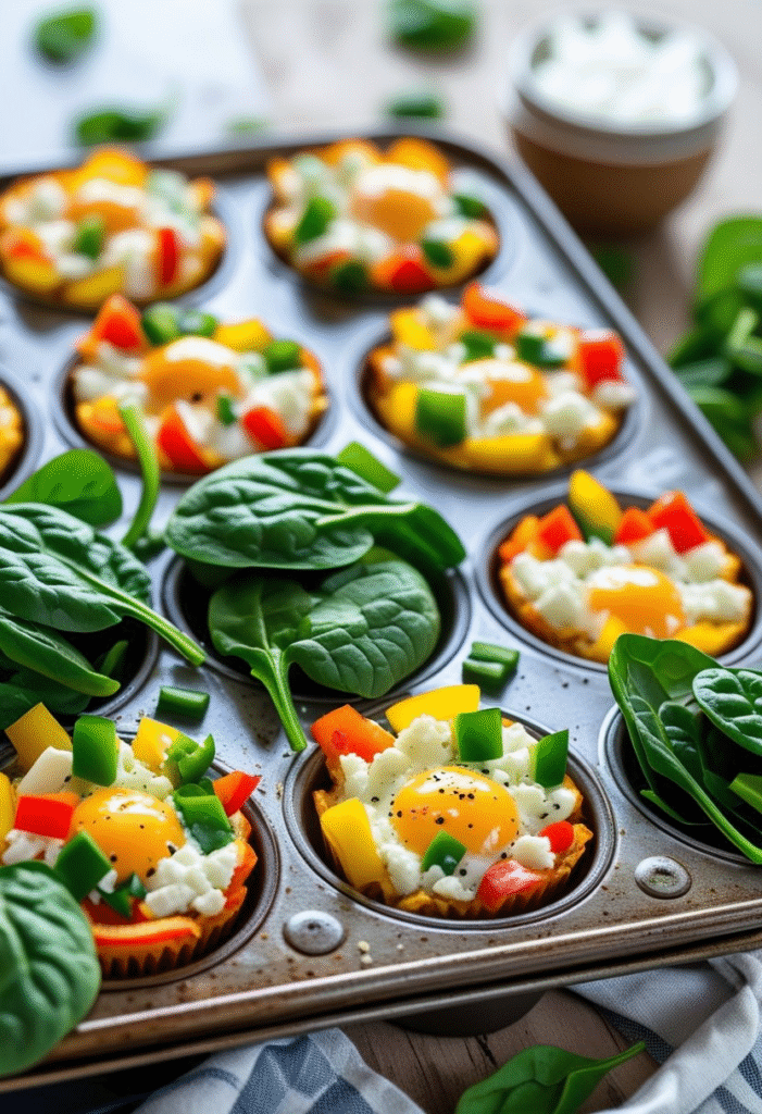 Whip together cottage cheese, eggs, bell peppers, onions, and spinach, then bake in muffin tins. These portable bites are perfect for meal prep and on-the-go mornings.