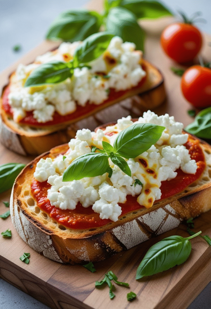 Top bread slices with cottage cheese, marinara, turkey pepperoni, and shredded mozzarella. Air fry or bake until the edges are crispy and the cheese melts. A quick and healthier pizza fix.