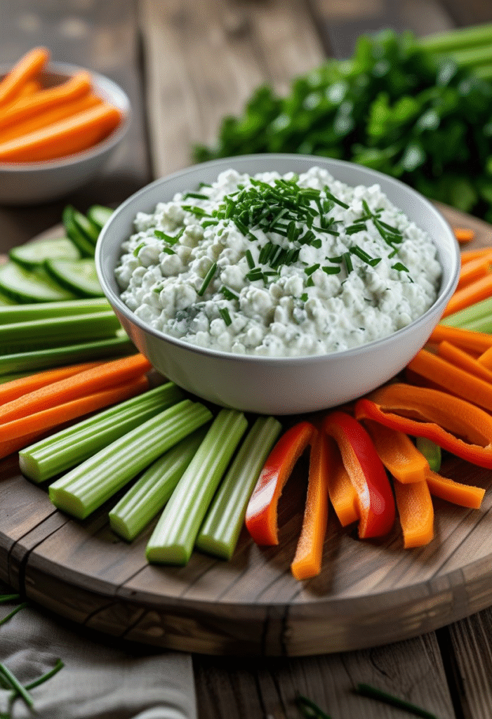 Mix cottage cheese with dill, garlic, onion powder, and lemon juice. Blend until smooth for a protein-rich dip perfect for veggie sticks, crackers, or sandwich spreads.