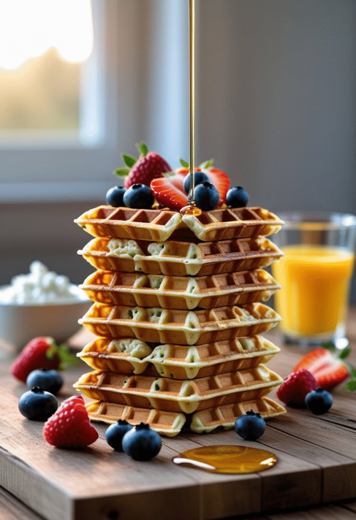 Swap part of your waffle batter with cottage cheese for crisp, golden, and fluffy results. These waffles pack serious protein without needing any powders.