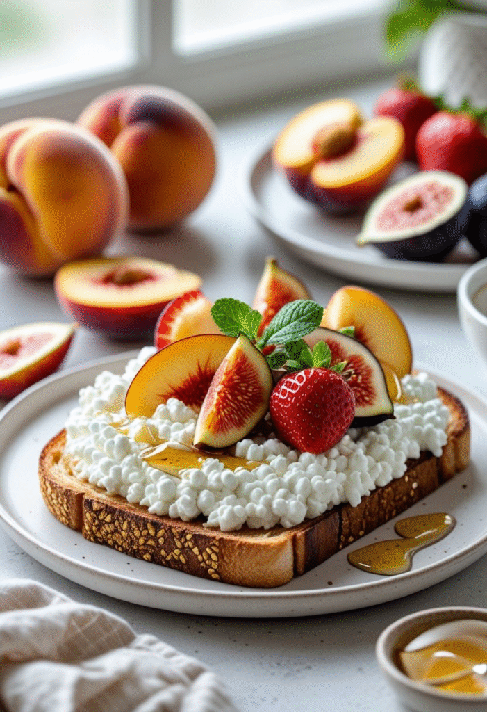 Blend cottage cheese with a dash of vanilla and honey, spread over toast, and top with fresh peaches, strawberries, or figs. It looks gourmet but takes minutes to make.