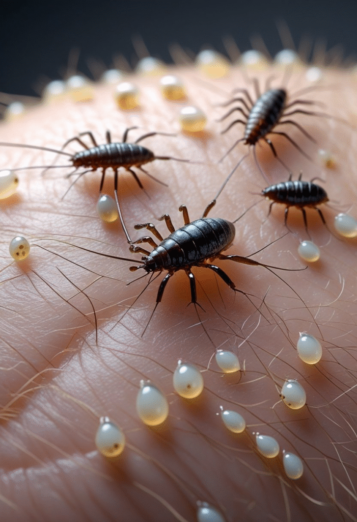 - Pubic Lice: Found in the genital area, though they can also infest other body hair.