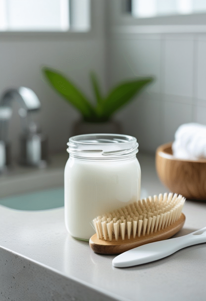 - Apply the mixture directly to the scalp, massaging it into the hair.