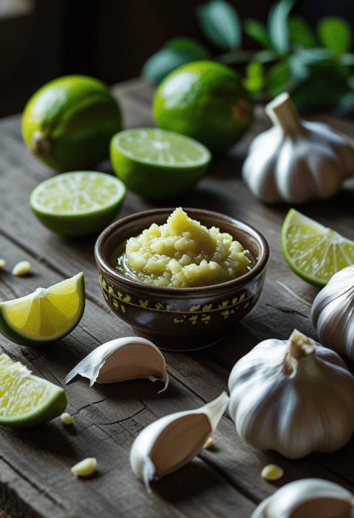 - Crush 8-10 garlic cloves and mix them with 2 tablespoons of lime juice.
