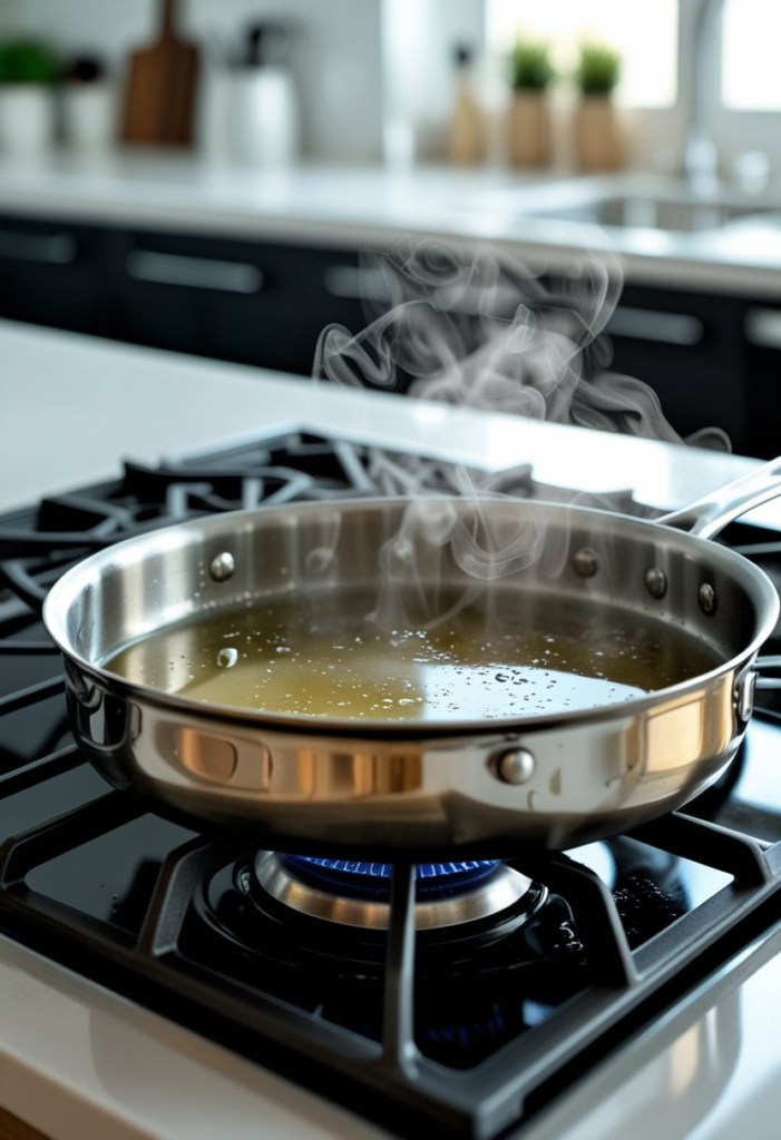 This method works well for cast iron, stainless steel, and aluminum pans.