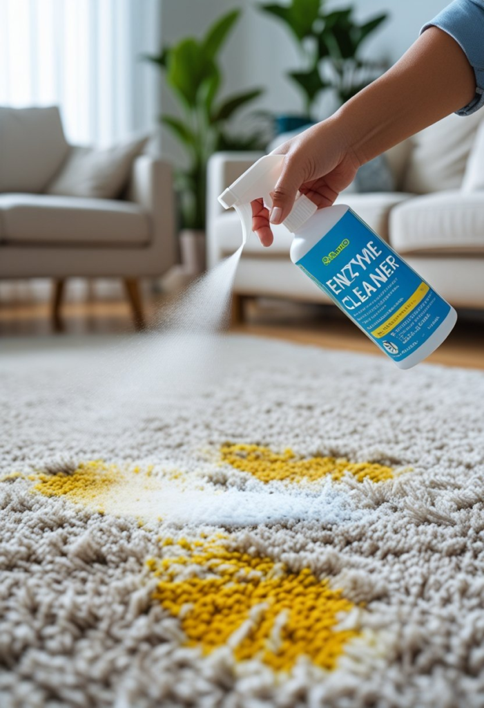 Once you’ve blotted up as much urine as possible, it’s time to tackle the stain and odor. The best way to do this is by using an enzyme cleaner. These products contain natural enzymes that break down the uric acid crystals in dog urine, eliminating the source of the odor. Enzyme cleaners are effective because they not only neutralize the odor but also prevent the stain from returning.